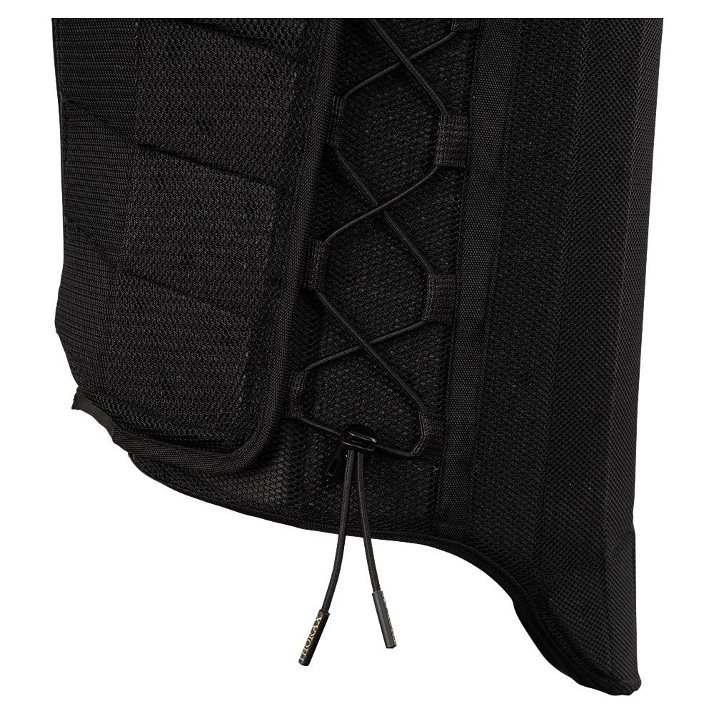 Bodyprotector Thorax is flexibel en vormt zich perfect naar je lichaam. Het elastische Easy Fitsysteem aan beide zijden geeft je de mogelijkheid om de bodyprotector strakker of juist losser te laten zitten. Daarnaast is de bodyprotector verstelbaar bij de schouders dankzij het klittenband. Tot slot zorgt de ritssluiting aan de voorzijde ervoor dat de bodyprotector stevig blijft zitten.