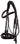 Luxuriöses, halbrund genähtes Zaumzeug und Trense aus hochwertigem Leder. Ausgestattet mit einem 4,5 cm breiten, weich gepolsterten Nasenriemen aus Lackleder, silberfarbenen Schnallen und Blindverschlüssen an den Backenstücken. Mit hängendem Stirnband.