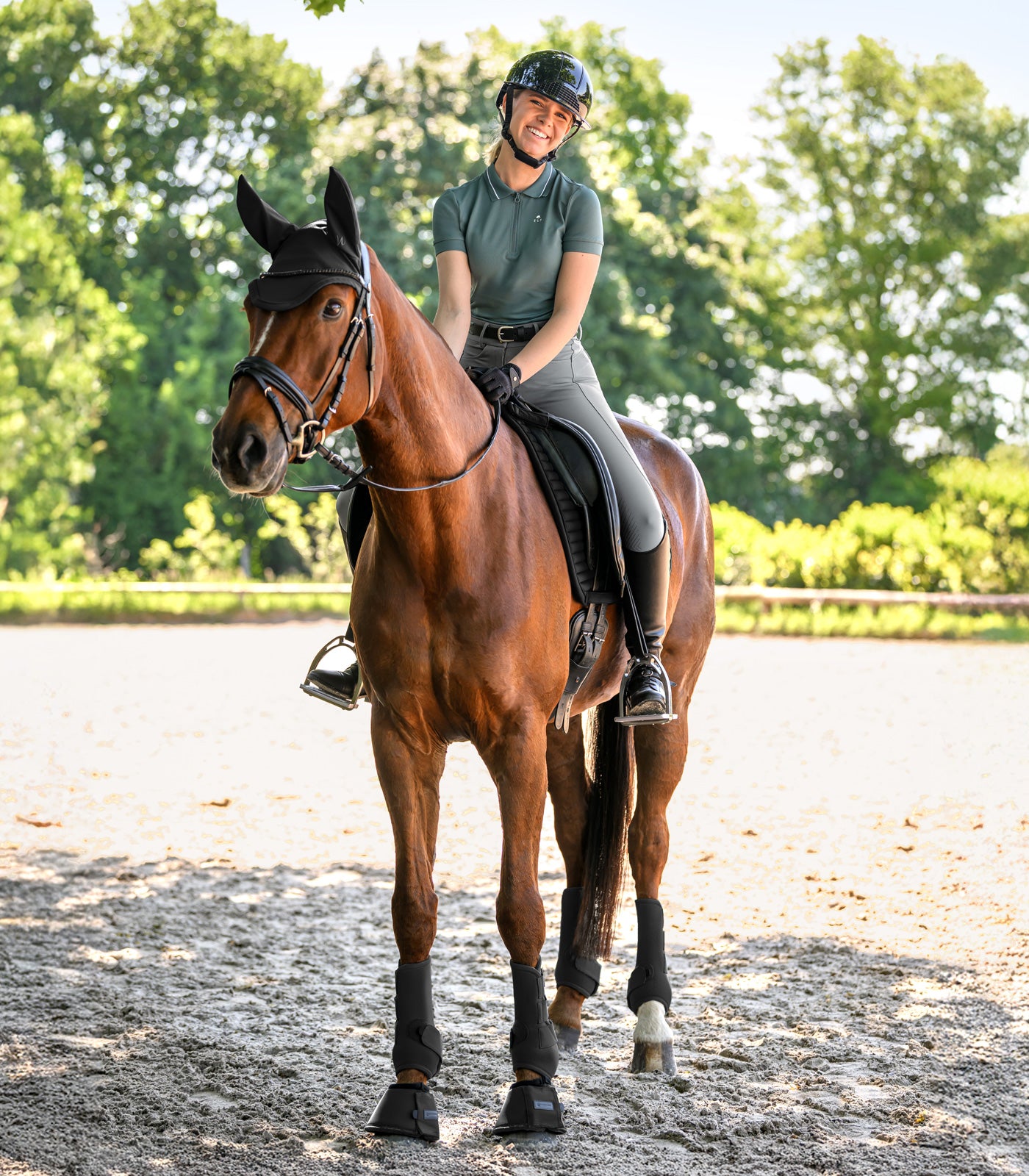 De Performance oornetjes combineren functionele insectenbescherming met een sportieve, technische uitstraling. Het ultralichte, geperforeerde softshell-materiaal bevordert de luchtcirculatie en voorkomt warmteophoping, zelfs bij langdurig gebruik. Het is vormvast en sneldrogend. De elastische oren zorgen voor een anatomisch correcte pasvorm en blijven stevig op hun plaats, zelfs tijdens beweging. De iets langere snit bij de nek verbetert de stabiliteit onder het hoofdstel en vermindert het wegglijden. Het ontwerp benadrukt het sportieve karakter.
