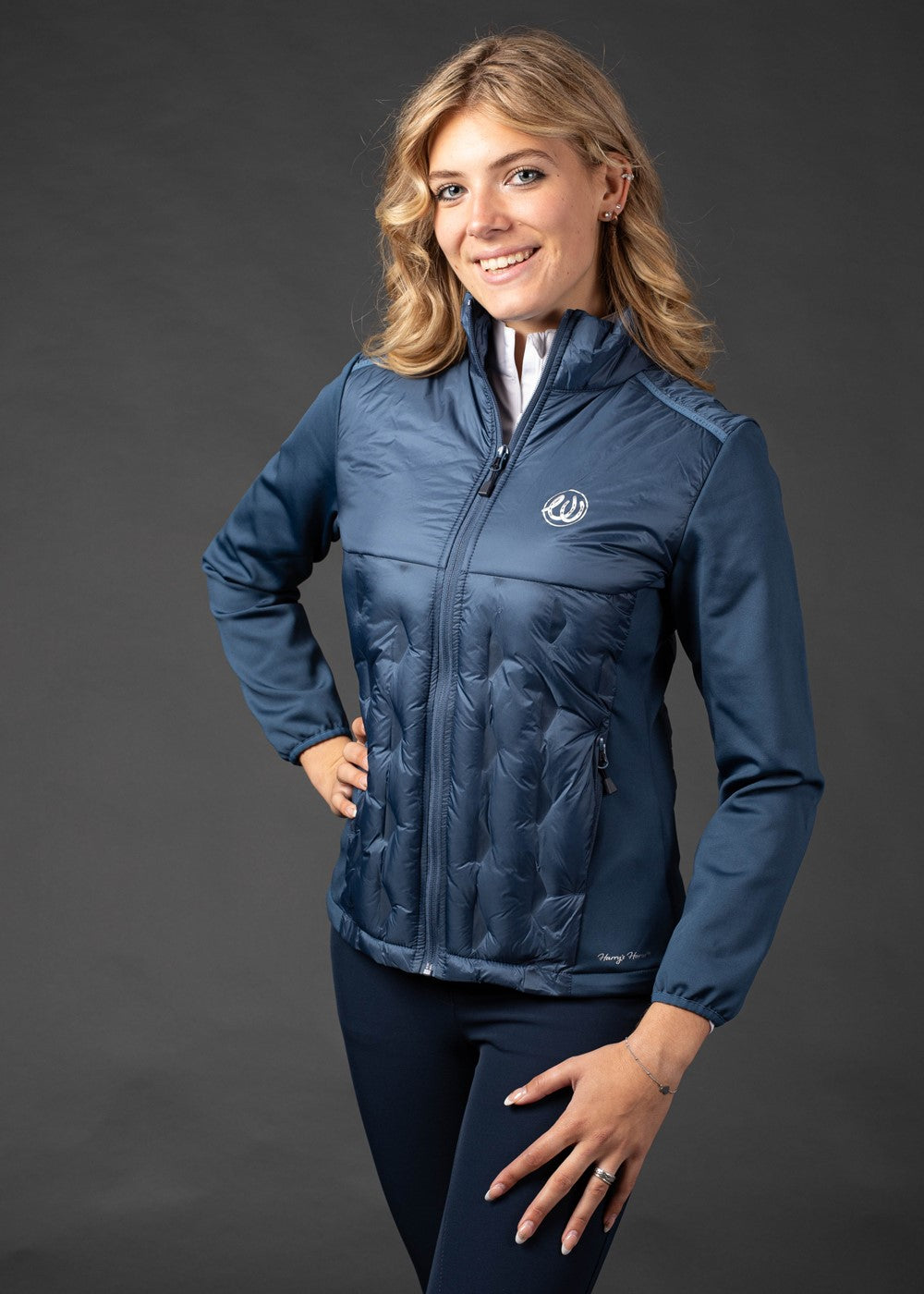 Sportliche Jacke, am Körper leicht gefüttert, Zwei-Wege-Reißverschluss, zwei Reißverschlusstaschen, zwei Innentaschen, Logo auf der Brust.
