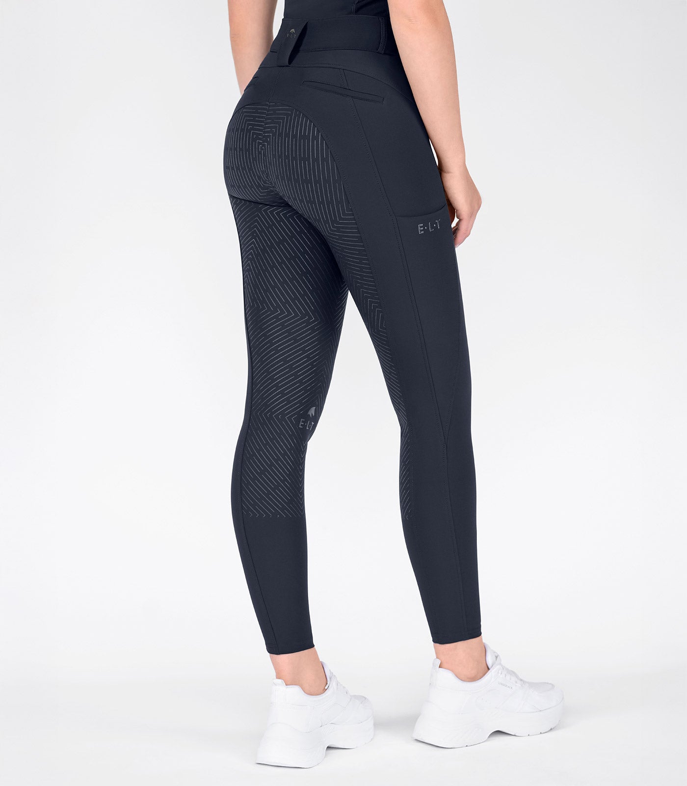 - Zilverkleurig E·L·T-logo op de achterste riemlus
