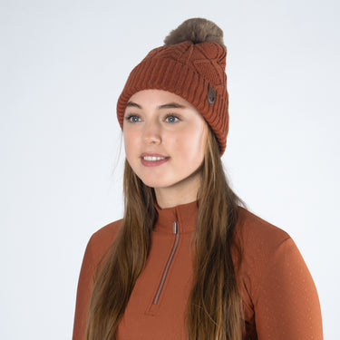 Gebreide muts met pompom van imitatiebont. Productspecificaties:< Fleece gevoerd voor extra warmte Materiaal: < Buitenzijde: 49% viscose 30% polyester 21% polyamide. Voering: 100% polyester fleece