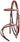 Mexicaans hoofdstel met zachte padding op de frontriem, neusriem en kopstuk en constrast stiksels. Uitgevoerd met zachte wollen bescherming onder het midden van de neusriem. Met bijgeleverde webband teugels.