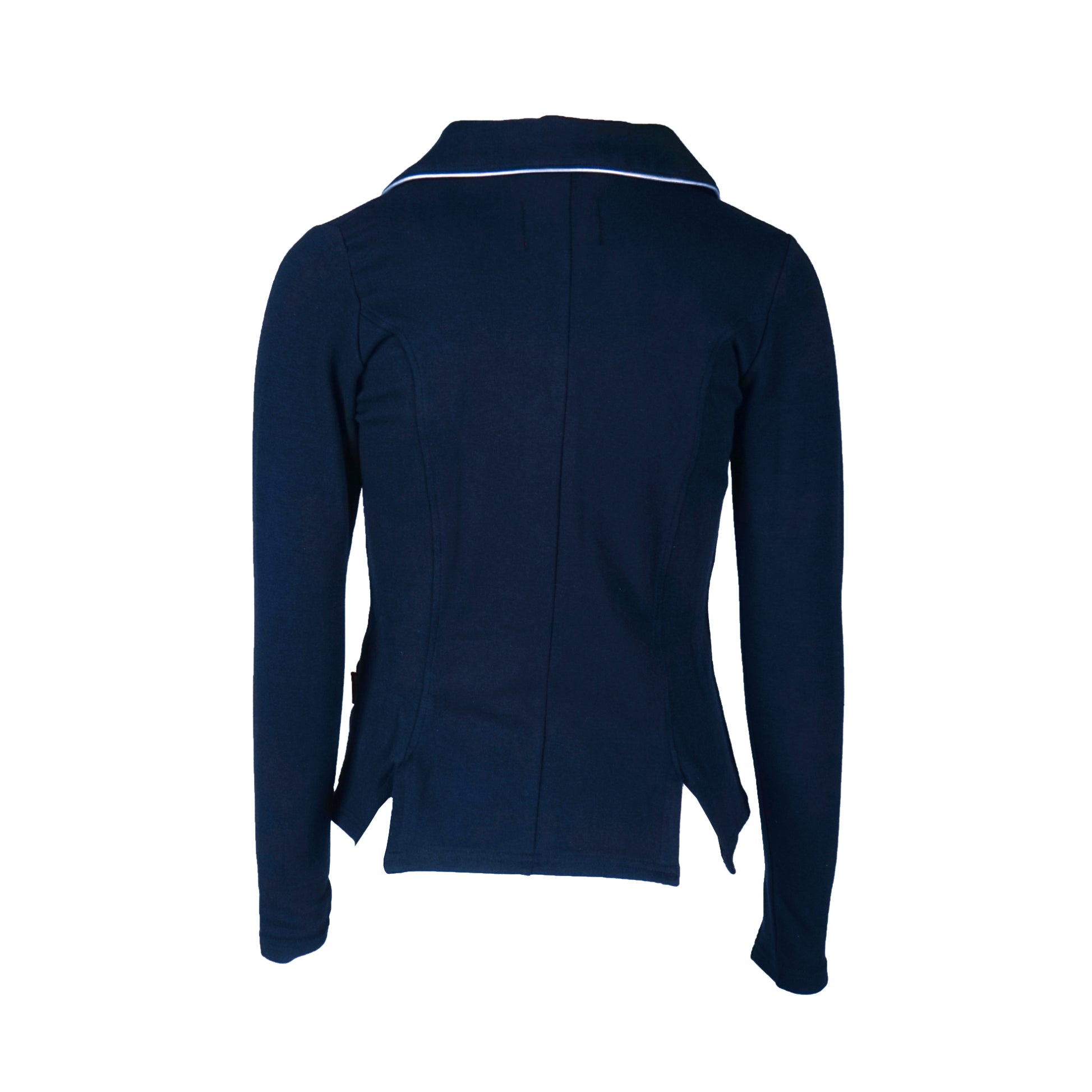 Gunstig geprijsd wedstrijdjasje met een moderne uitstraling. :Het jasje is vormgegeven met knopen aan de voorkant zakken met knopen en zilveren bies : Productspecificaties: Wedstrijdjasje met moderne look Gunstig geprijsd Knopen aan de voorzijde zakken met knopen en zilveren bies :Materiaal: 95% katoen 5% lycra