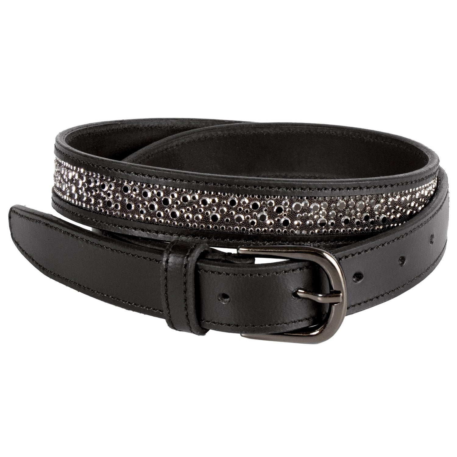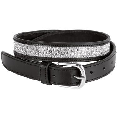 Luxe lederen riem, weelderig afgewerkt met fonkelende ronde kristallen.
