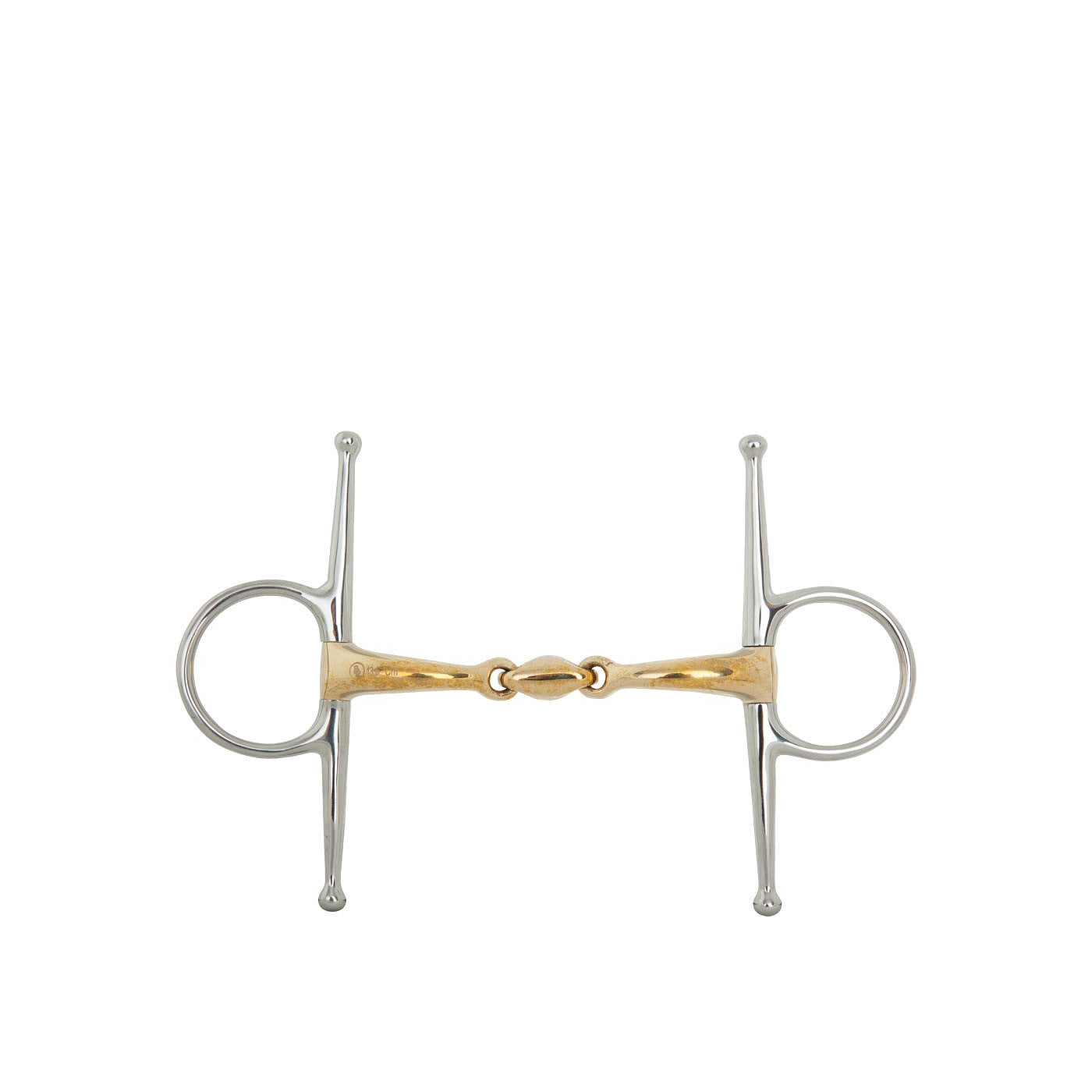 Deze kwalitatief hoogwaardige dubbel gebroken kneveltrens, met losse scharen, is vervaardigd van massief Cuprigan met roestvrijstalen ringen en scharen. Cuprigan is een legering bestaande uit 89% koper, 7% aluminium, 3% ijzer en 1% zink Het oxidatieproces van het materiaal geeft een prettige geur en smaak. De anatomische vormgeving volgt de vorm van de paardenmond, waardoor een zachte en gelijkmatige drukverdeling ontstaat. Door de combinatie van de vormgeving en de unieke samenstelling van Cuprigan, wordt het kauwproces en de speekselvorming gestimuleerd, waardoor er een fijne verbinding kan ontstaan met de gevoelige paardenmond. Het bit heeft een normale inwerking op de mond. Het mondstuk heeft een dikte van 14 mm en de scharen hebben een lengte van 127 mm. ??