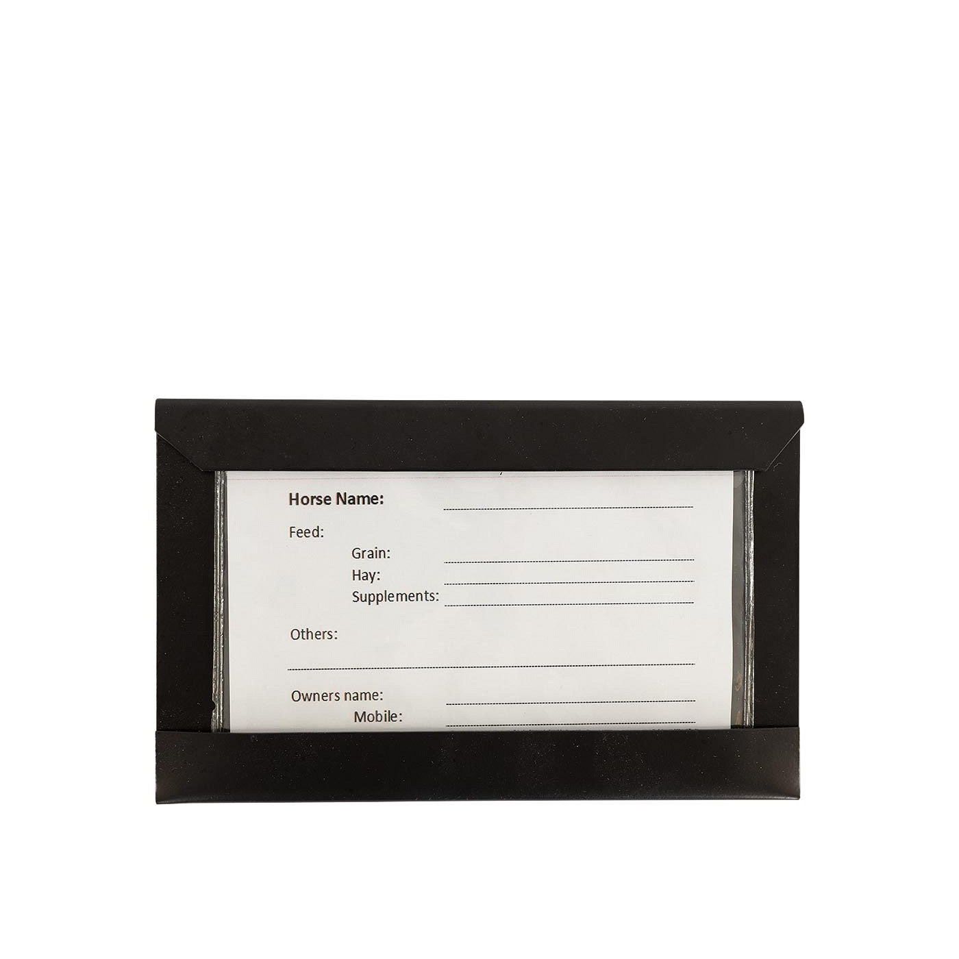 Deze metalen stalplaat met geplastificeerde stamkaart is stevig en gaat lang mee. Schroeven niet inbegrepen.
